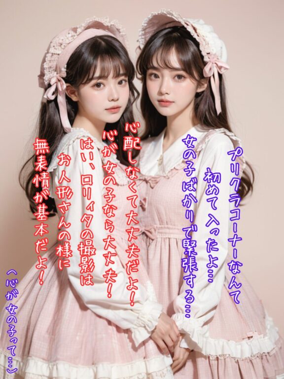 気づけば、俺は鏡の前に立っていた。ワンピースを着せられ、ふわふわのパニエを履かされ、ピンクのリボンを巻かれる。彼女の手際は鮮やかで、抵抗する間もない。